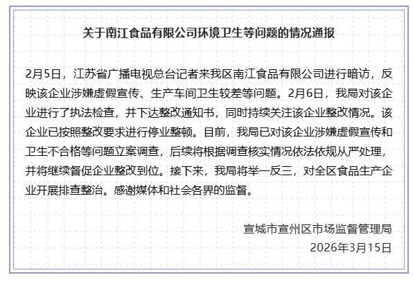 安徽宣城市宣州区市场监督管理局3月15日通报:
