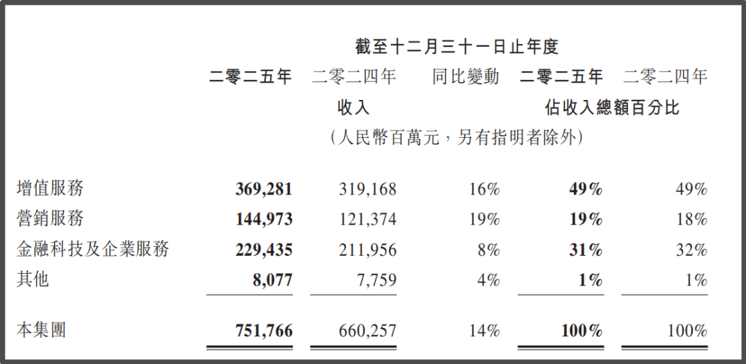此次腾讯虽然没有公布AI业务的直接收入,但与2024年AI红利集中在四季度不同,2025年AI已成为贯穿腾讯全年的增长变量,对增值服务、营销服务、金融科技及企业服务三大核心板块形成普遍拉动。