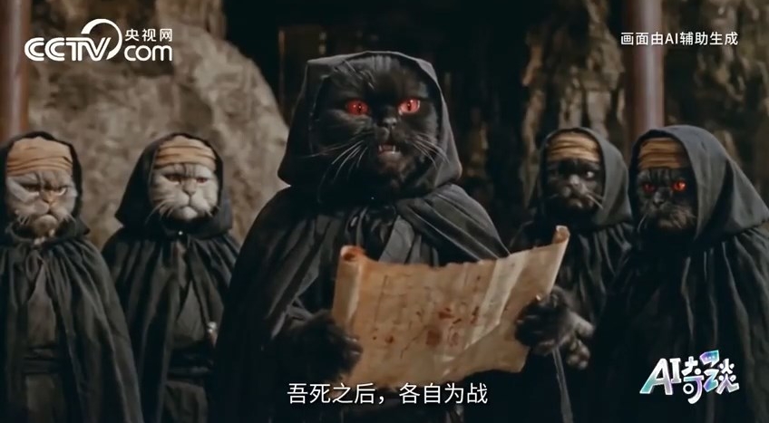 18日,央视网《AI奇谈》栏目推出的5分钟AI武侠寓言短片《流金谷恩仇录》(又名《止戈为武:流金谷恩仇录·白鹰与波斯猫》)正式上线,凭借“邵氏武侠”质感的画面、巧妙的现实隐喻的通俗表达,迅速引爆网络。