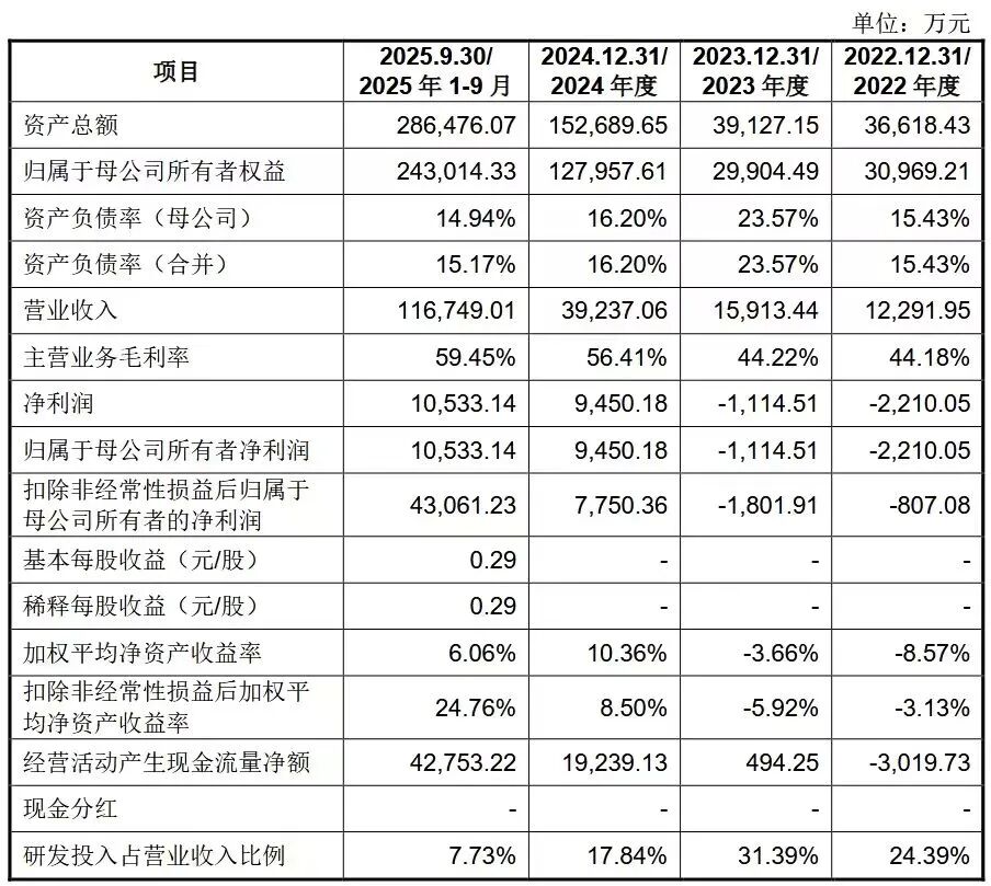 招股书披露,2022-2024年,宇树科技营收从1.23亿元增至3.92亿元,年复合增速78.66%;2025年前三季度营收已达11.67亿元。归母净利润方面,该公司从2022年-0.22亿元扭亏为盈,2024年达到0.95亿元;2025年前三季度则为1.05亿元,扣非归母净利润达到4.31亿元。