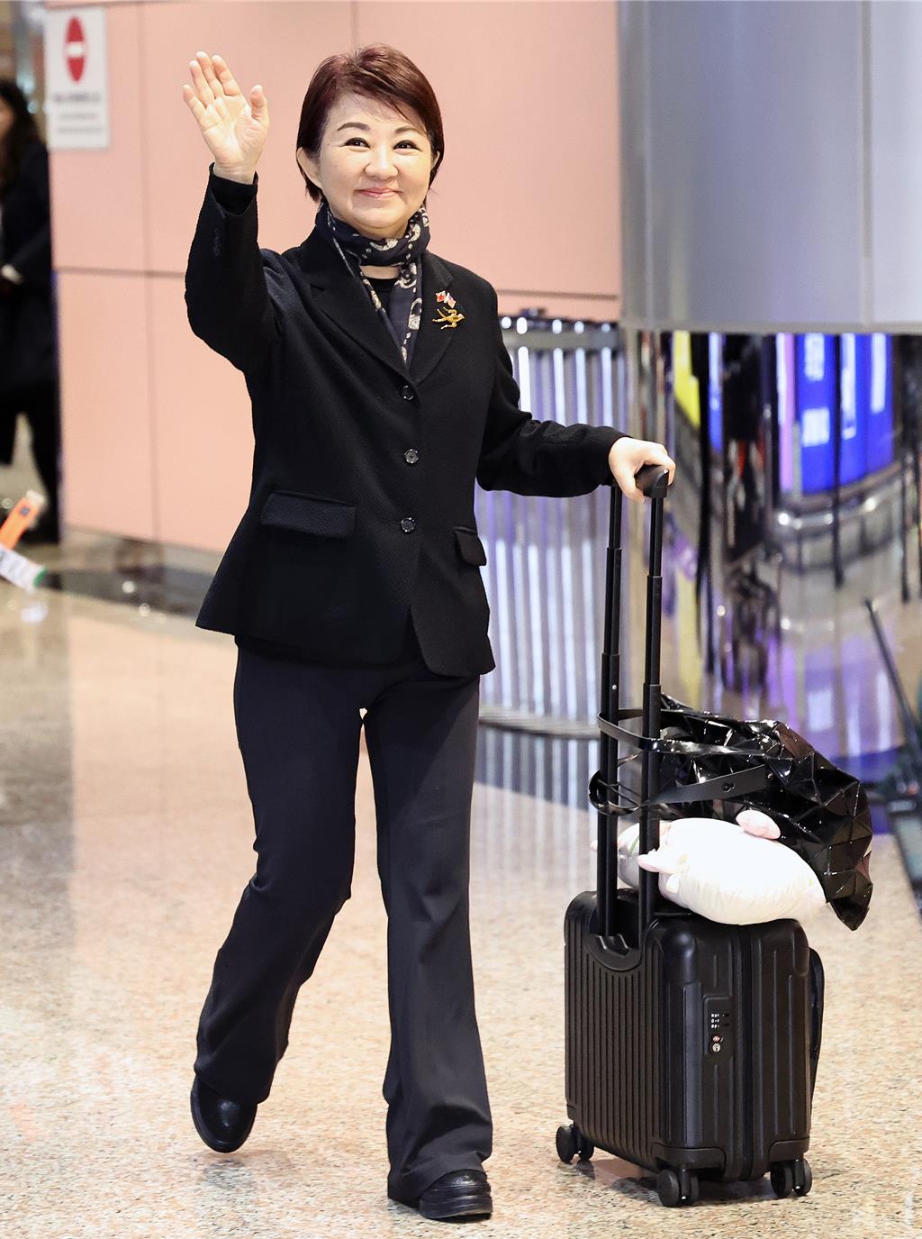 ▲台中市长卢秀燕21日清晨搭机返台。中时新闻网