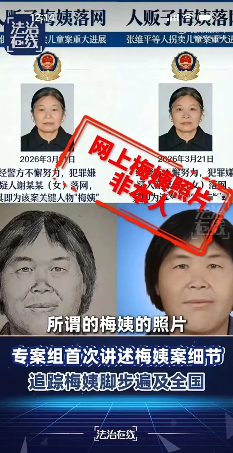随着谢某某的落网,困扰公众多年的谜团也终将解开。“梅姨”到底长什么样?跟此前公布的画像像不像?据记者了解,从增城警方2017年首次公布“梅姨”模拟画像,到如今嫌疑人落网,多年过去,她的长相已发生很大变化。民警告诉记者,现在网上流传的一些所谓的“梅姨”的照片,都不是她本人。目前案件正在进一步办理中,现阶段,警方不会对外公布“梅姨”的照片。