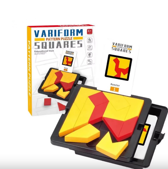 七巧板拼图,使用各种几何形状的积木来组合成不同的图案。“完全是七巧版的加强版,训练孩子对形状的敏感度,需要他们主动去尝试和思考,有助于脑力训练。”