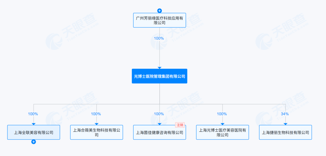 上海光博士医疗美容医院成立于2012年,曾自称是中国首家祛斑专科医院,由光博士医院集团100%持股。据此前光博士医院集团官网介绍,光博士医院集团成立于2010年,是一家聚焦皮肤医学美容的、集“医、教、研”于一体的医疗服务集团。根据此前公开信息,光博士医院集团目前在国内有两家医院,分别是上海光博士医疗美容医院与重庆光博士医疗美容门诊部,它们的定位均为“光博士 临床科研教学医院”。