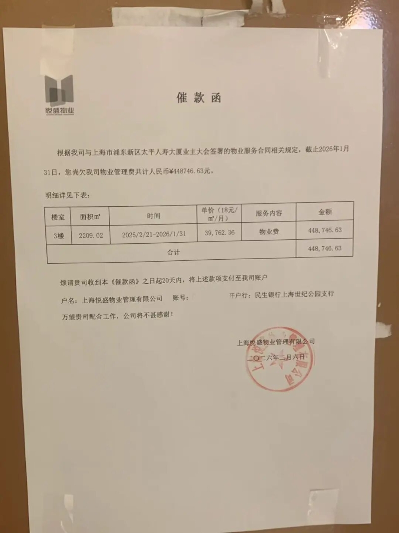3月24日午后,界面新闻记者在来到上海光博士医疗美容医院,据现场物业人员介绍,该机构“在2025年初就关门了,里面是非常漂亮的”。而在入口处记者看到,该医院已被张贴物业管理费的钱款催款函。