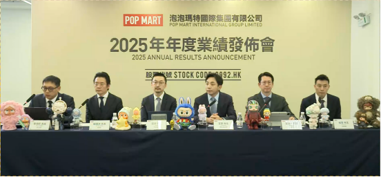 当天,泡泡玛特发布2025年年度业绩。报告期内,泡泡玛特实现收益371.2亿元(人民币,下同),同比增长184.7%;实现公司拥有人应占溢利127.76亿元,同比增长308.8%。