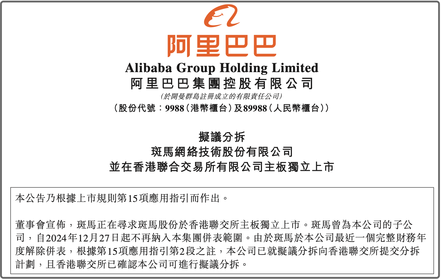 ▲阿里巴巴公告截图