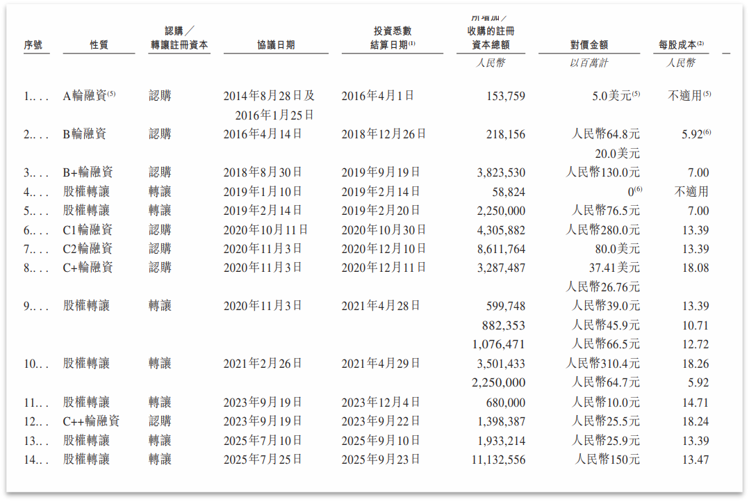 2014年起,极飞科技迈入融资扩张历程。2016年B轮融资对价为5.92元/股;到2023年9月C轮融资时,对价为18.24元/股;但2025年9月股东间股份转让时,价格又回落到13.47元/股。