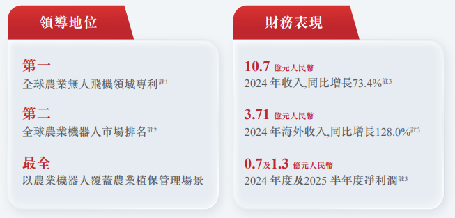 根据弗若斯特沙利文数据,2024年,极飞科技以全球17.1%市占率、中国大陆20.8%市占率,位居全球和中国农业无人机行业第二,仅次于大疆。