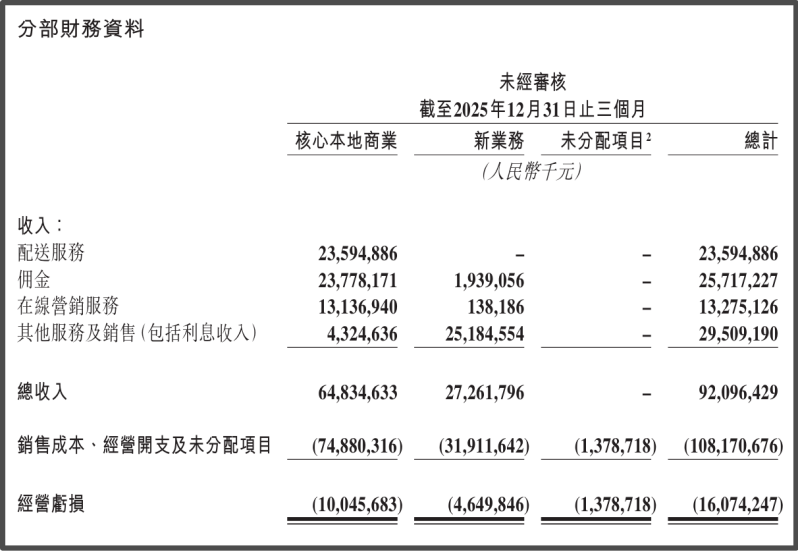 2025年,美团全年净亏损达到234亿元。而挑战者的业绩同样承压。阿里销售费用同比激增340亿元,京东新业务板块单季录得157亿元亏损,9个月累计亏掉318亿元,大部分资金流向外卖板块,全行业巨额的烧钱投入并未带来格局的根本性变化。