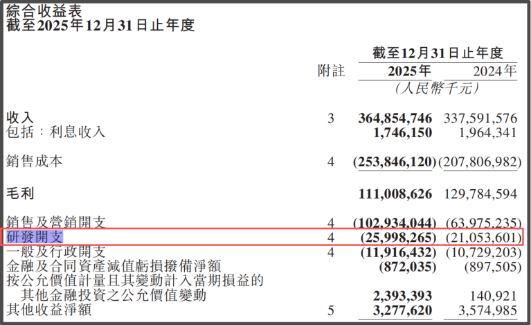 财报显示,由于AI的投入增加及薪酬开支增加,美团研发开支由2024年的211亿元增加23.5%至2025年的260亿元,占收入百分比由6.2%同比增加0.9个百分点至7.1%。
