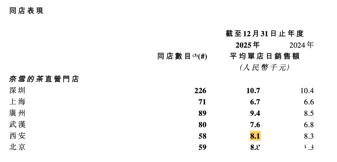 在大幅关店后,奈雪直营店的各项经营数据有明显改善。2025年,其直营店的平均单店销售额同比上涨了5.48%至约7700元;单店日均订单量同比上涨了15.71%至313单;每笔订单平均销售金额同比下降了8.61%至24.4元。