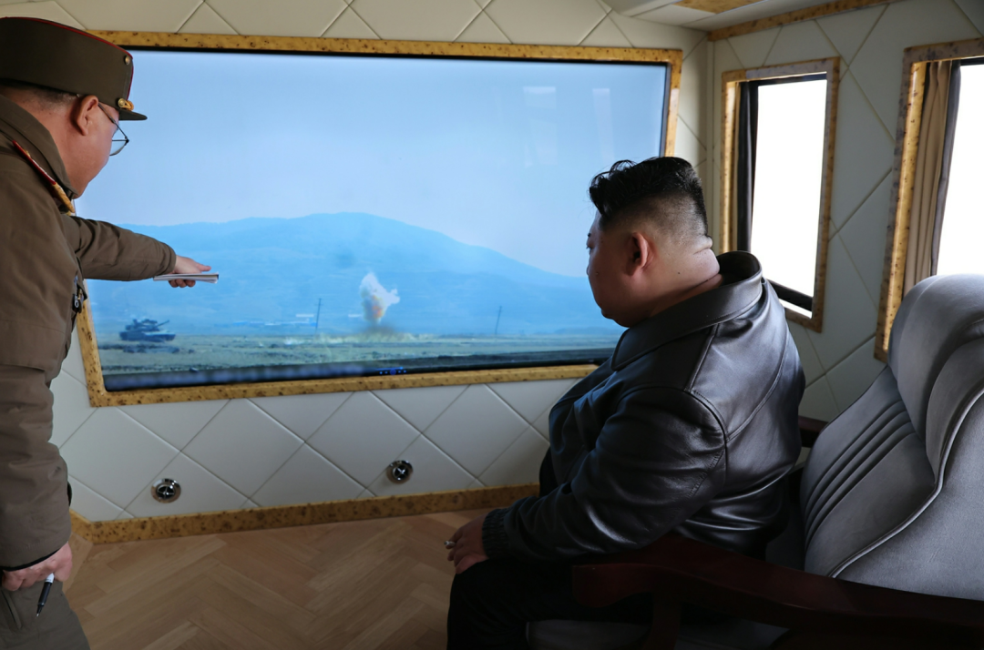 此外,金正恩还观摩由朝鲜国防科学院装甲武器研究所组织的坦克能力评估试验,以及大功率固体燃料发动机地上点火试验。