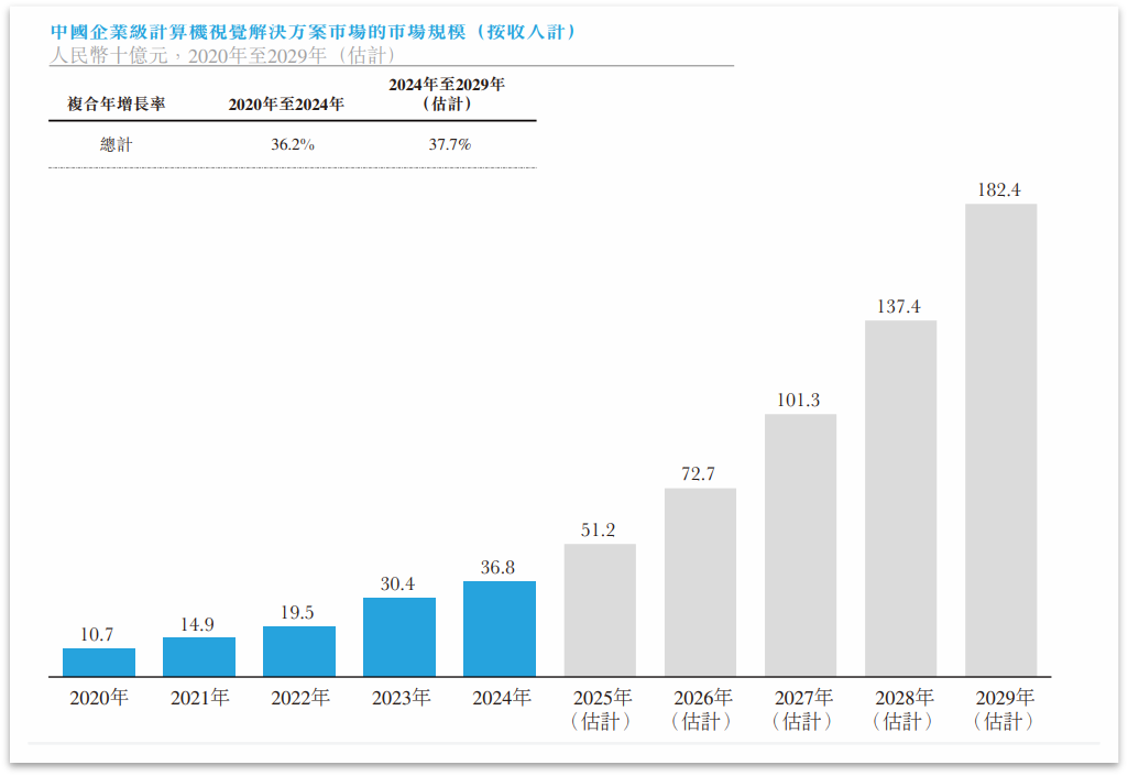 根据弗若斯特沙利文数据,按2024年的收入计,极视角在中国企业级计算机视觉解决方案市场中排名第九,份额为0.5%。