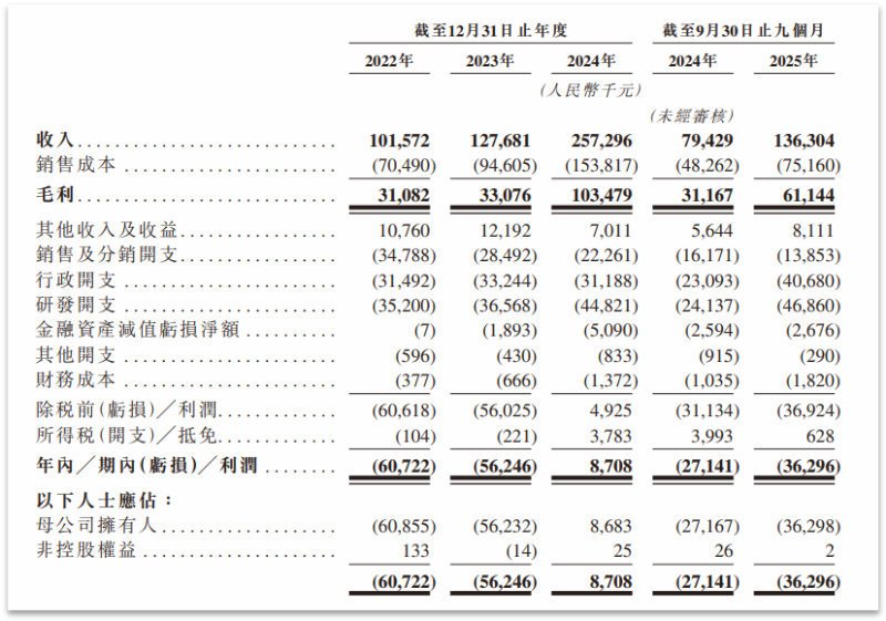 极视角近年来业绩增长迅速。2022年至2024年,公司营收从1.02亿元增至2.57亿元;2025年前三季度营收1.36亿元,同比增长71.7%。