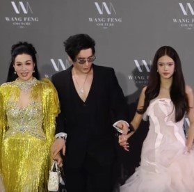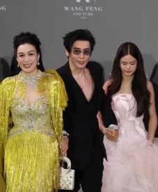 不过四人并排而行齐齐登场时,却出现尴尬的一幕。当时张伦硕主动伸出手,紧紧拖着身旁的继女Jaden。但从画面中所见,Jaden的表情瞬间显得有些不悦,她随即毫不犹豫地将后父的手甩开,身体也稍微侧向另一边。虽然整个过程仅短短几秒,但Jaden的抗拒反应及张伦硕略显尴尬的神情,均被镜头清晰捕捉。