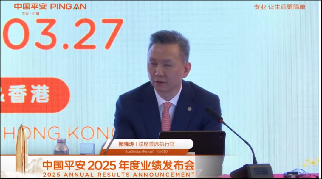 3月27日上午,中国平安(02318.HK/601318.SH)2025年度业绩发布会在上海与香港两地同步举行。面对市场关注的业绩波动、战略布局、投资方向等核心问题,中国平安总经理兼联席首席执行官谢永林、联席首席执行官兼副总经理郭晓涛、副总经理兼首席财务官付欣等核心管理层悉数出席并逐一回应。