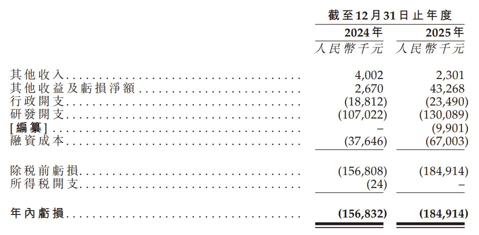 于2024年度及2025年度,该公司的年内亏损分别为1.57亿元、1.85亿元人民币。