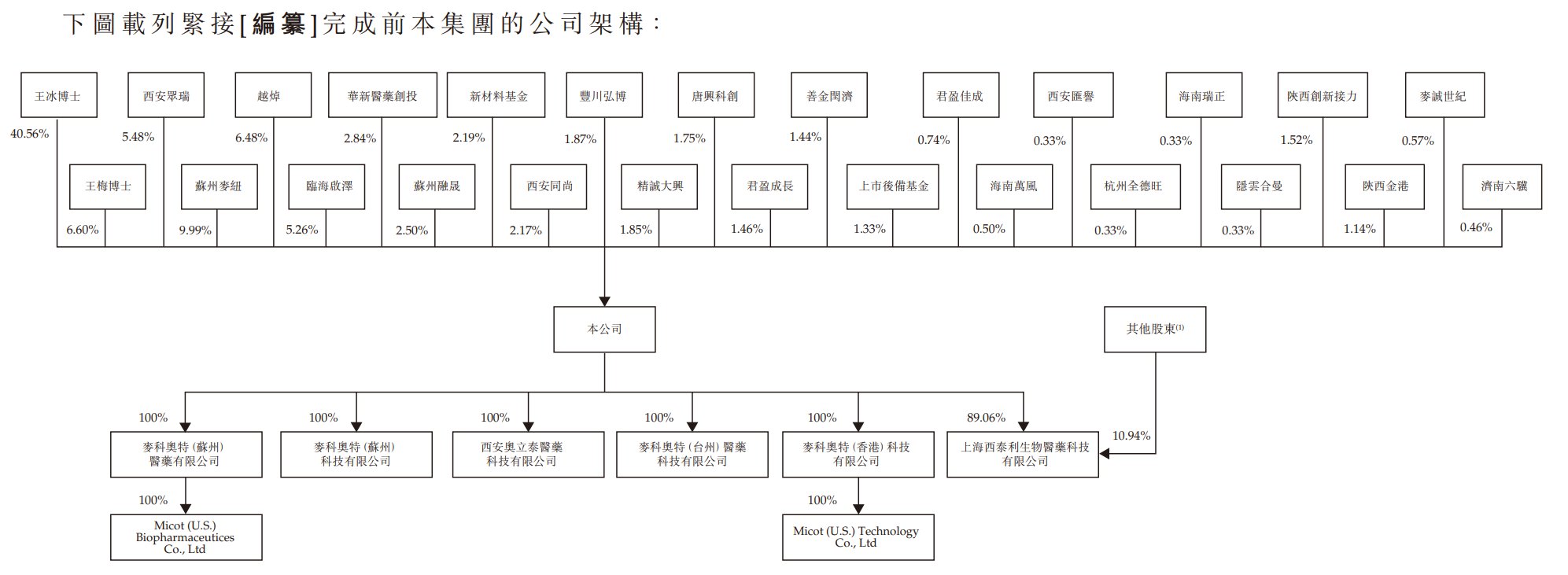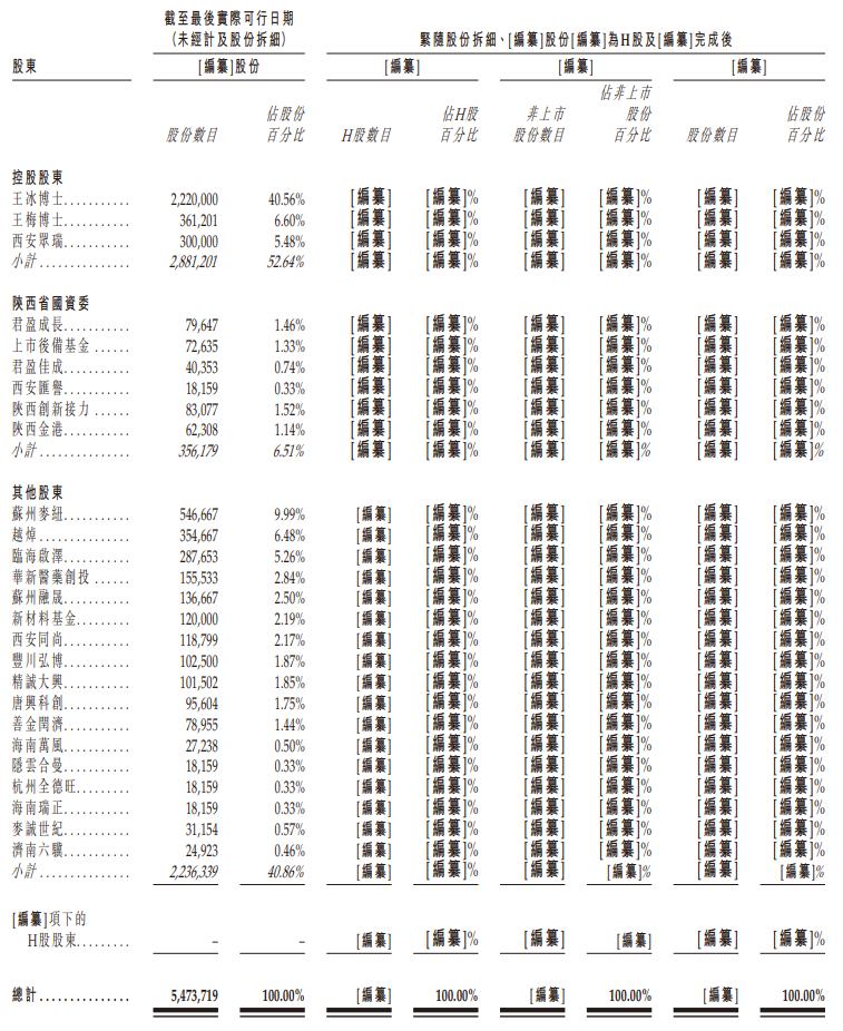 截至2026年3月23日,王冰博士、王梅博士及西安众瑞分别直接持有公司40.56%、6.60%及5.48%的权益。王梅博士与王冰博士为配偶。王梅博士及王冰博士分别持有西安众瑞泽康企业管理咨询有限公司99.00%及1.00%的权益,而众瑞泽康为西安众瑞的普通合伙人。西安众瑞直接持有公司5.48%的权益,因此王梅博士及王冰博士被视为西安众瑞所持公司5.48%权益的实益拥有人。
