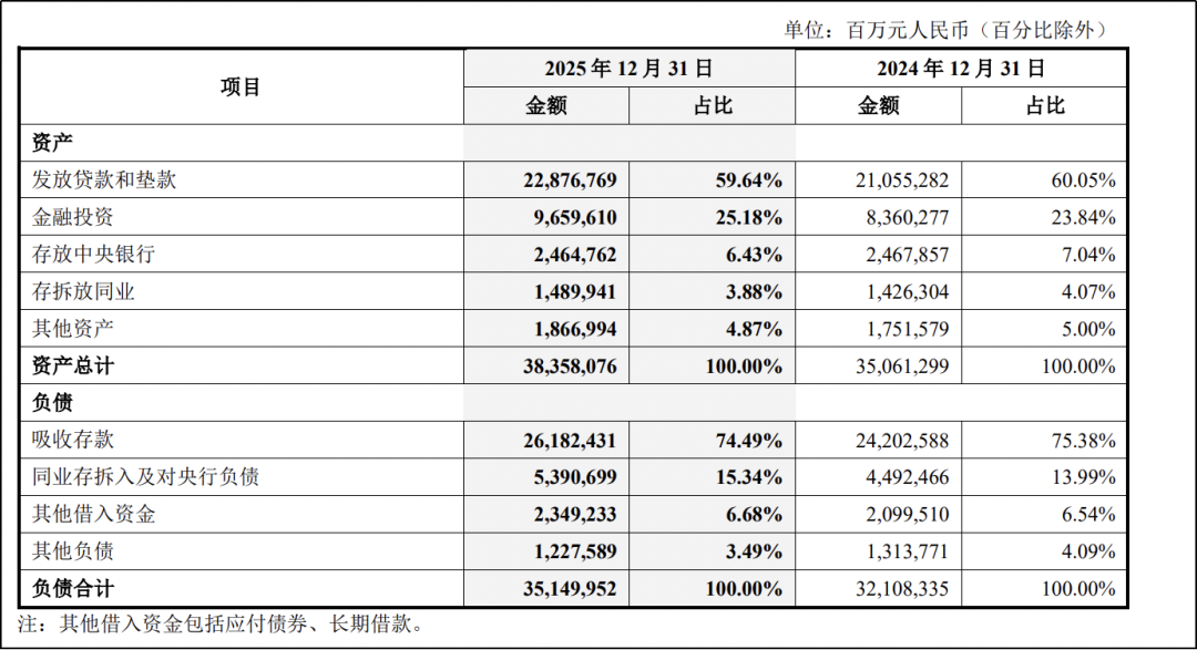截至2025年末,中国银行资产总计38.36万亿元,负债合计35.15万亿元,同比分别增长9.40%、9.47%。同期发放贷款和垫款总额234534.92亿元,较上年末增加18594.24亿元,增长8.61%;其中人民币贷款203552.45亿元,增长9.94%,外币贷款折合4407.93亿美元,增长2.89%。