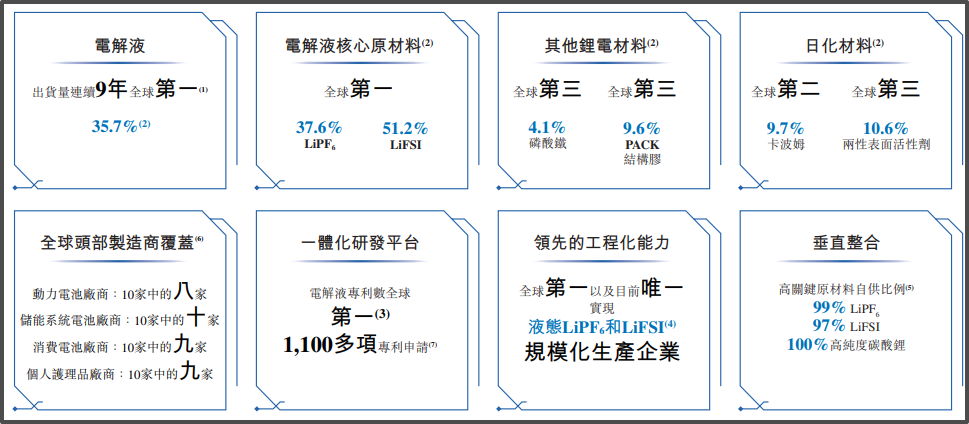 根据灼识谘询数据,自2016年起,天赐材料连续九年位居全球电解液出货量第一,2024年全球市场份额达到约35.7%。