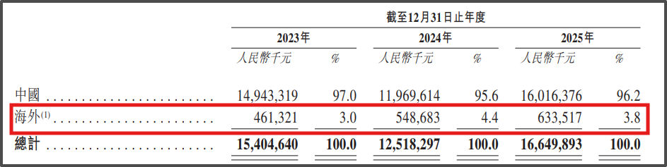 尽管客户遍布全球,但公司海外收入占比却长期处于低位,2025年海外收入仅6.34亿元,占总营收比例为3.8%,收入主要来源于东南亚、美国及韩国市场。