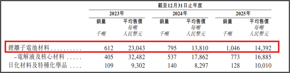 从核心产品价格来看,2023—2025年天赐材料锂离子电池材料的平均售价依次为每吨23043元、13810元、14392元。公司对应毛利率为25.9%、18.9%和22.2%。