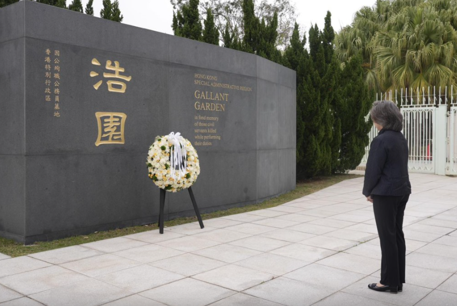 她提到,悼念期间亦到消防队目(追授)何伟豪的墓前拜祭,致以最崇高的敬意。何伟豪于去年扑救大埔宏福苑大火时不幸殉职,“他的英勇无私铭记在我们的心中。其他长埋浩园的公务员舍己为公的精神,及为市民的付出,也让我们永远怀念他们。”