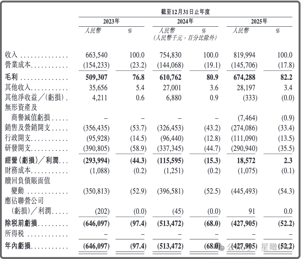 盈利方面,群核科技仍处于“亏损收窄”阶段,2023年—2025年分别亏损6.46亿元、5.13亿元、4.28亿元,合计已超15亿元,但按非国际准则(经调整),2025年实现净利润5712.7万元,实现扭亏为盈。