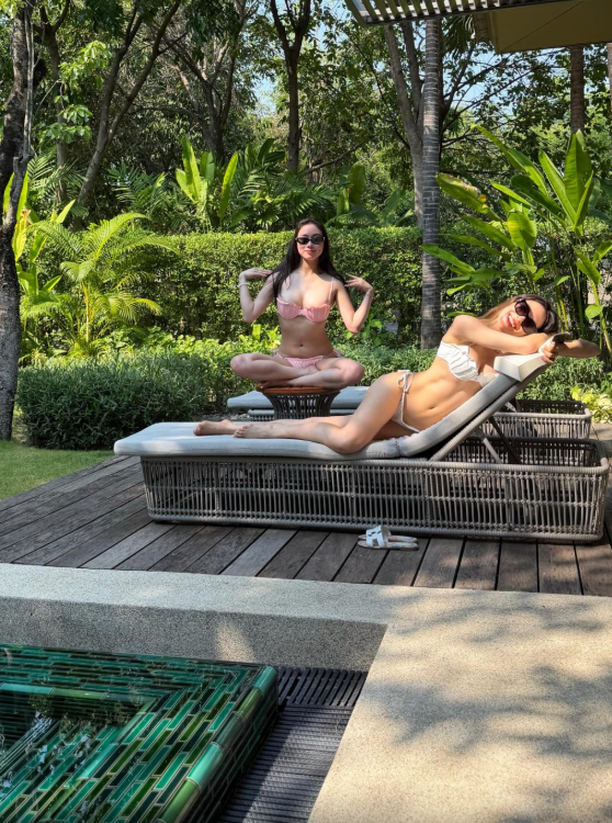 ▲近日何超欣和好友谷爱凌一起度假,更齐齐晒比基尼泳照。