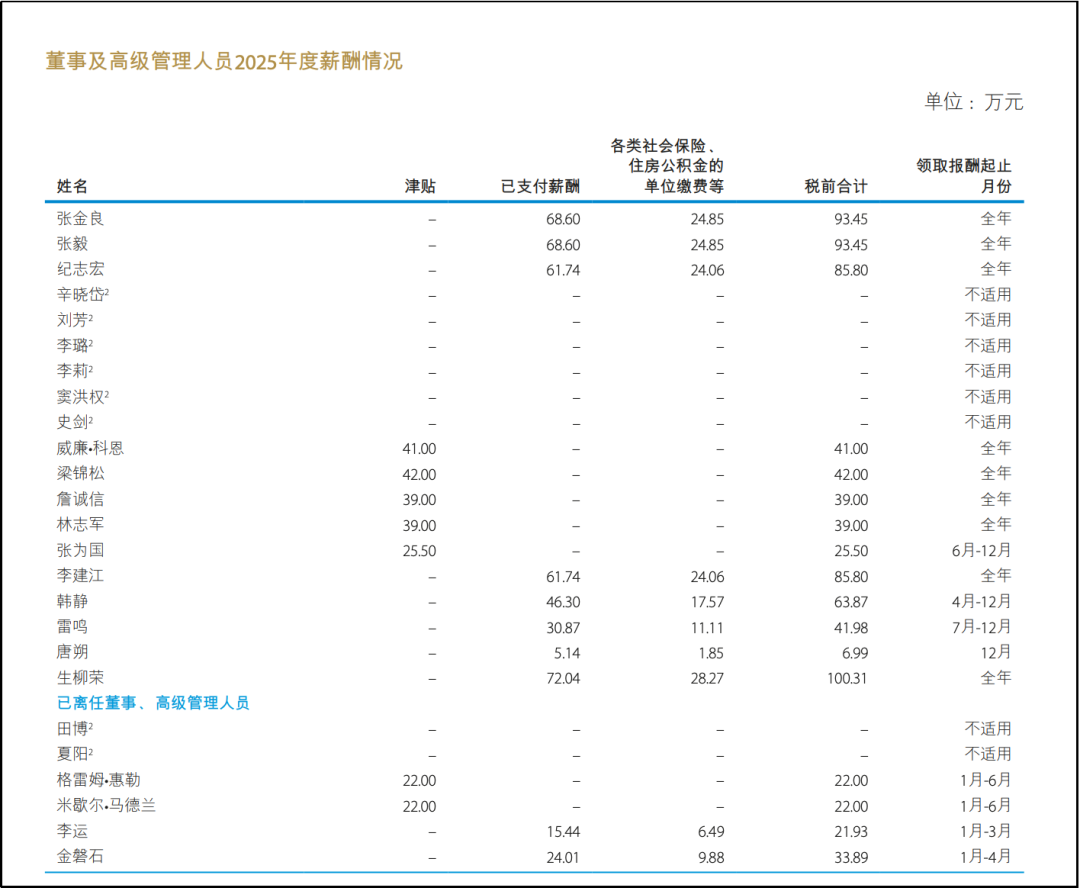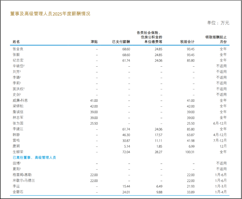年报披露,全年共发生16次人事变动:辛晓岱、李莉、窦洪权、史剑、张为国首次任职董事,田博、夏阳、格雷姆·惠勒、米歇尔·马德兰退出董事会;张毅自2026年2月起兼任首席合规官,纪志宏自2025年4月起兼任董事会秘书,韩静、雷鸣和唐朔分别于2025年5月、2025年8月和2026年1月出任副行长;李运自2025年3月起不再担任副行长,金磐石因年龄原因于2025年4月卸任首席信息官。