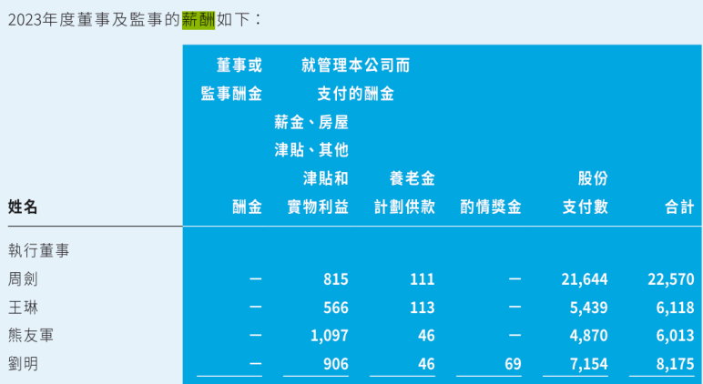 另外,虽然优必选高管薪酬近两年并未公布,但2023年,优必选创始人、董事会主席周剑薪酬总包为2257万元,为公司高管中最高,包含薪金、奖金和股份支付等部分。“亿元薪酬”足以称得上顶级。