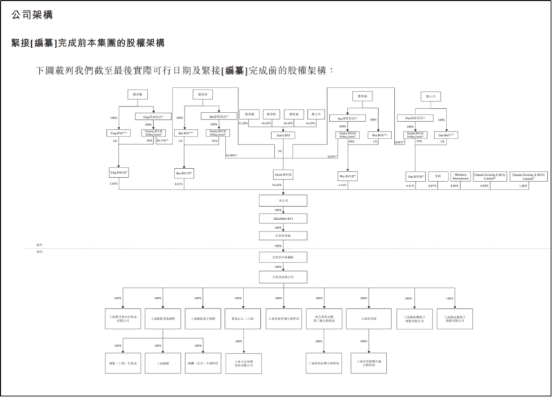 自然堂是典型的家族式企业,股权高度集中于郑氏家族。截至IPO前,郑春颖、郑春彬、郑春威、郑小丹通过创始人BVI公司及家族信托架构,合计持有开曼上市主体约87.82%的投票权,为公司控股股东,其中郑春颖持股74.58%,其胞弟郑春彬、郑春威及胞妹郑小丹各持股比例低于5%。