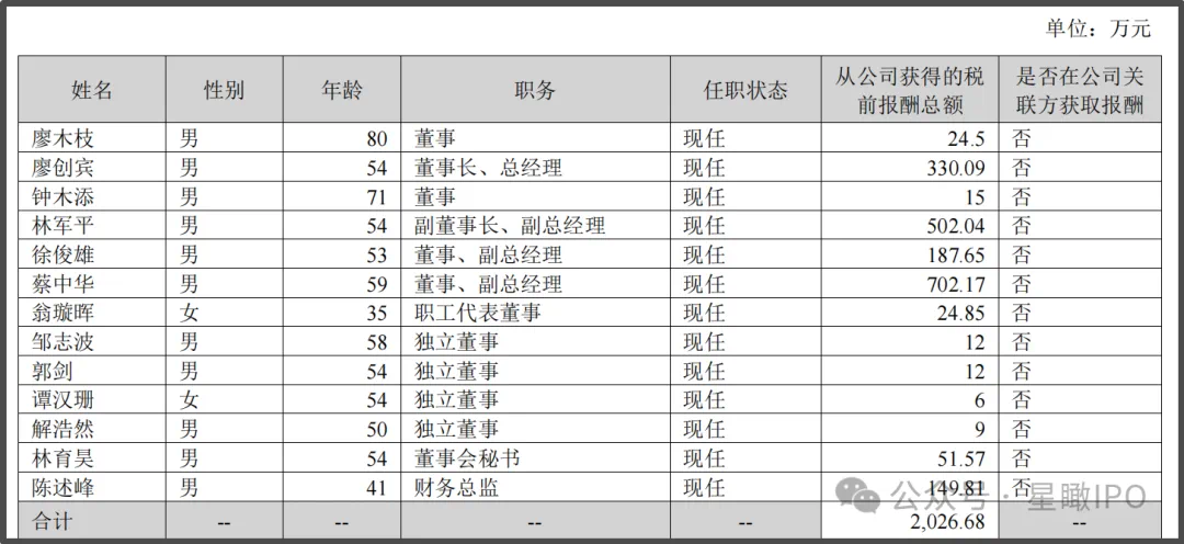 其中,潮宏基副总经理蔡中华薪酬为702.17万元,居公司董高薪酬首位,与上年相比薪酬增加339.57万元,增幅为93.65%。而潮宏基董事长、总经理廖创宾薪酬为330.09万元,与上年相比增加136.62万元,增幅为70.62%;副董事长、副总经理林军平薪酬502.04万元,与上年相比增加267.36万元,增幅为112.22%。
