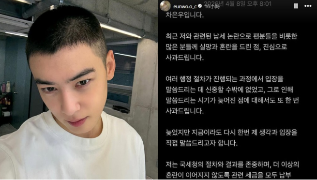 29岁韩星车银优于今年初被爆涉逃税200亿韩元,曾发千字文道歉。昨晚(8日)车银优再在社交平台二度撰长文,透露已依照韩国国税厅的调查结果,完成补缴税款及罚金,涉及金额高达约200亿韩元,并再次向大众道歉,不过韩国网民对事件睇法反应两极。