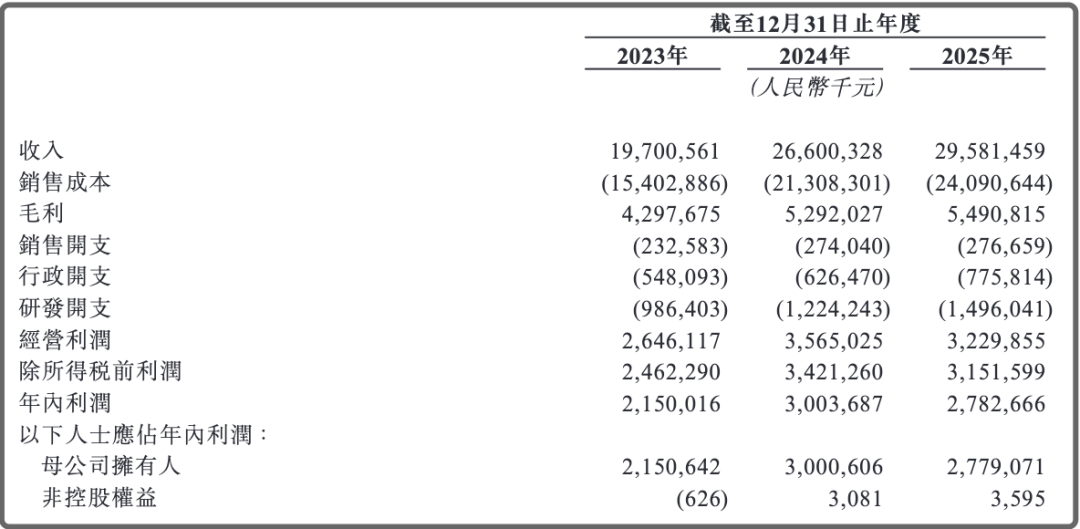不过其年内利润却有所波动,在2024年上涨至30.04亿元后于2025年下降至27.83亿元。拓普集团称,毛利增加而年内利润下降,主要是由于扩充研发团队并加大研发力度,导致研发开支增加2.72亿元,以及扩充海外行政团队,行政开支增加1.49亿元。
