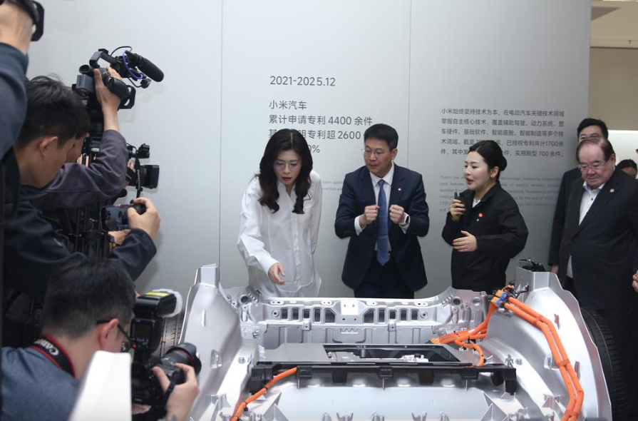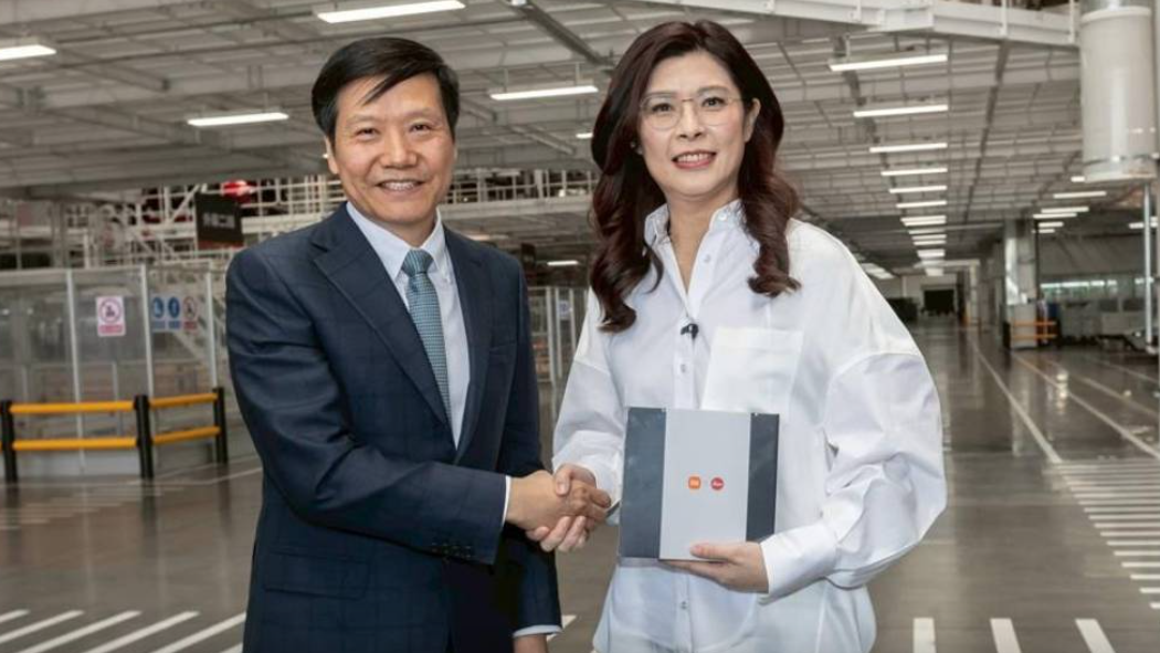 在离开北京前,郑丽文一行于上午到访位于北京通州的小米汽车超级工厂,实地了解国内新能源汽车的最新发展。小米集团创办人兼董事长雷军亲自接待,并赠送一部小米最新款手机予郑丽文。