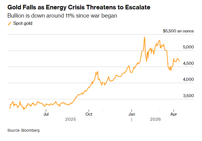 自2月底以来,金价已累计下跌约11%,反映出投资者在通胀与政策不确定性交织下的防御策略转向。