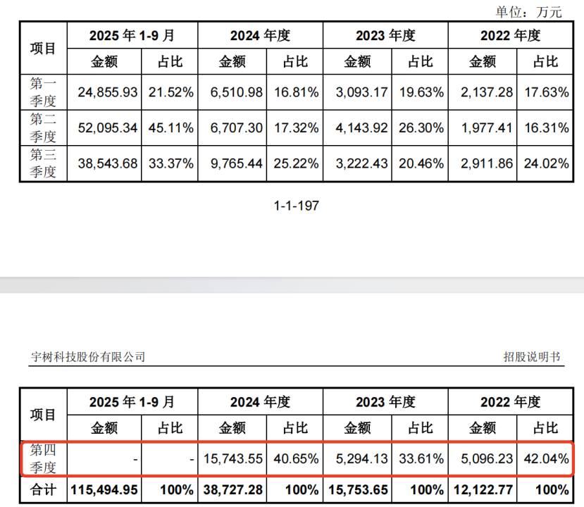 公司解释,由于新产品多数在下半年陆续形成收入并在当年第四季度开始形成规模收入,加之部分客户实行集中采购、预算管理等制度,采购活动或项目验收多会发生在第四季度,使得各年四季度收入占比相对较高。