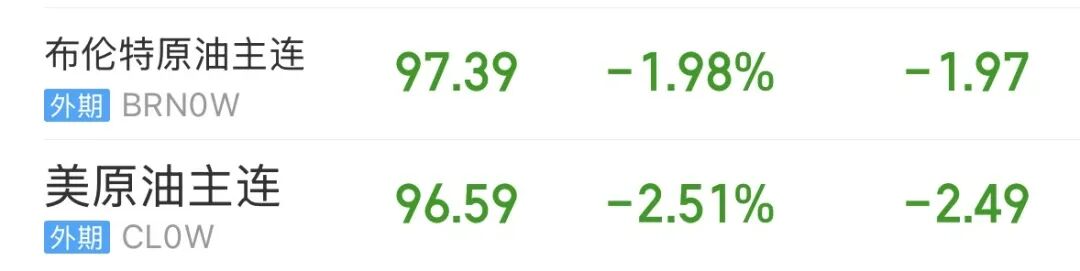 北京时间14日,国际油价均跌回100美元以内。布伦特原油开盘跌1.87%,报97.5美元/盎司,WTI原油开盘跌1.09%,报97.99美元/盎司。13日尾盘,受中东局势影响,国际油价一度跳水。