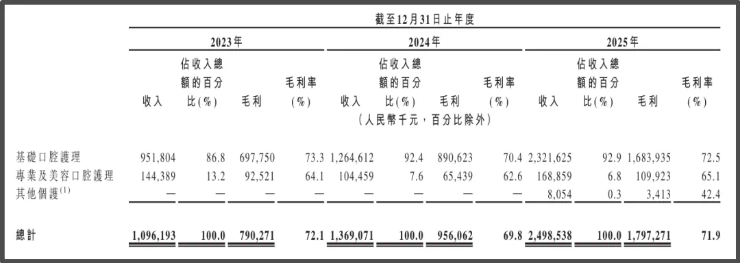 按产品组合分,“参半”品牌旗下的基础口腔护理产品贡献收入占比逐步提高,2025年达到92.9%;其次是“参半”品牌旗下专业及美容口腔护理,占比6.8%;新推出的其他个护品牌“小箭头”仍在培育期,收入占比仅有0.3%。得益于“参半”两大类产品较高的毛利率,小阔科技的毛利率总体稳定在70%左右,2025年约达71.9%,同比上升2.1个百分点。