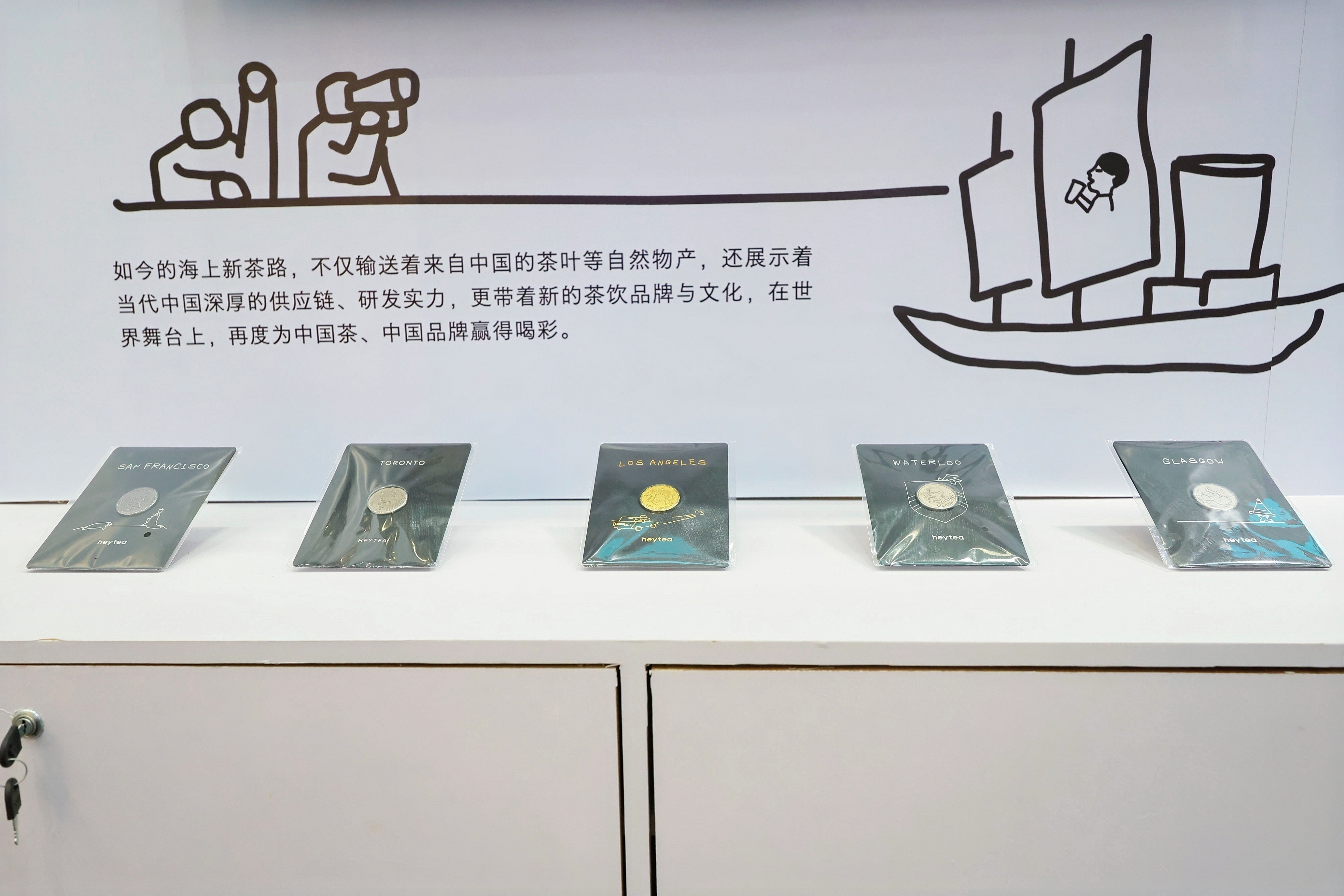 在展区现场,一台喜茶自研的茶咖一体机陈列在展位中央,这台设备已在9个海外国家获得认证使用。观众可以现场品尝到喜茶纽约时代广场lab店的限定纯茶产品“栀子1”,该产品由茶咖一体机现场萃取,而非传统冲泡。