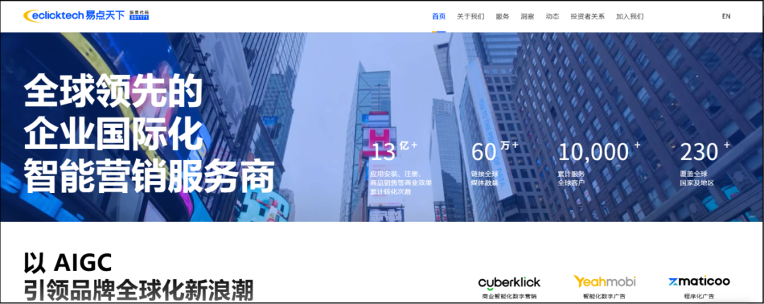 招股书显示,易点天下是一家专注于助力“中国企业出海”的数字营销服务提供商,已累计帮助客户实现超过13亿次商业转化,涵盖应用安装、用户注册及产品销售等场景,其长期合作伙伴包括阿里巴巴、腾讯、字节跳动、SHEIN等知名企业。按2024年总流水计算,易点天下在中国出海数字营销服务商中排名第四,市场份额5.0%;在全球市场的中国独立第三方移动广告平台中排名第三。