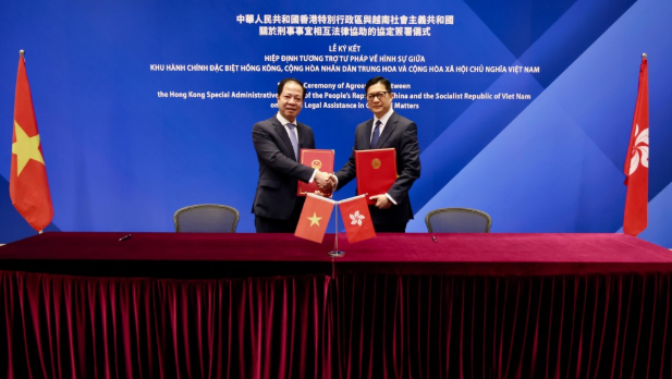 保安局局长邓炳强与越南最高人民检察院副检察长陈海军今日(14日)分别代表香港特区及越南,签署关于刑事事宜相互法律协助的双边协定。邓炳强在签署仪式上表示,国际间在司法协助上的合作,对于各个司法管辖区合力将匪徒绳之于法有十分重要的作用。
