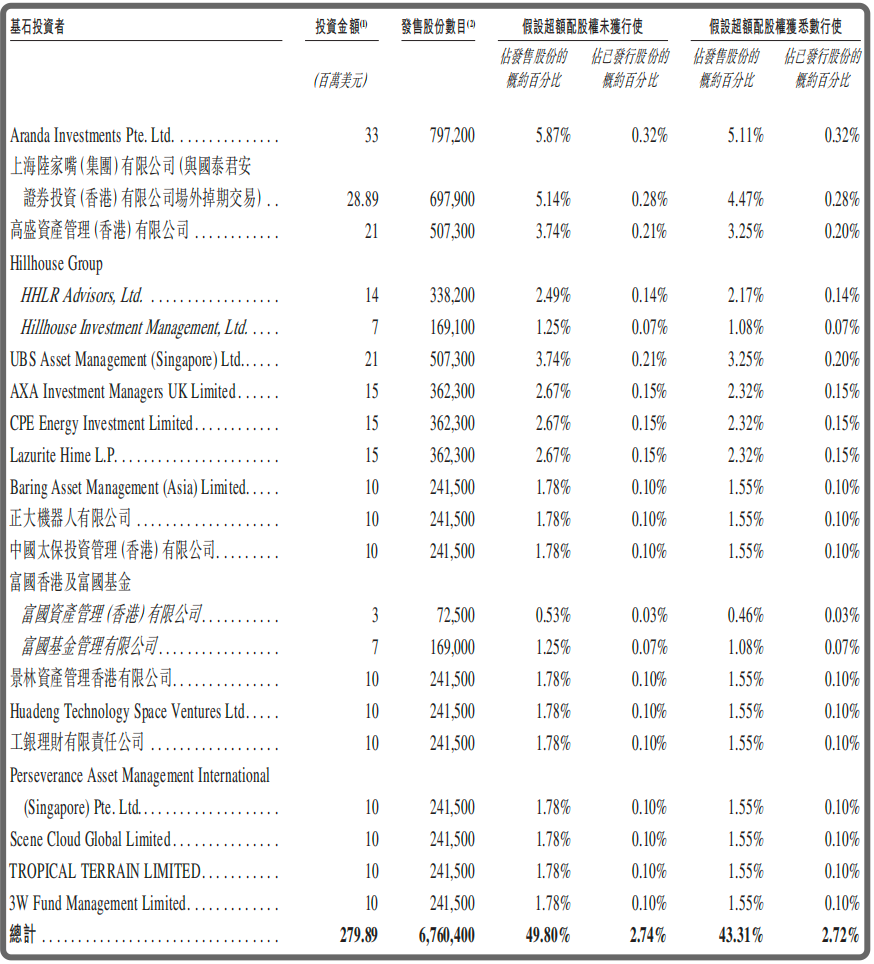 另外,思格新能本次IPO引入了包括淡马锡旗下Aranda、上海陆家嘴、高盛资产管理等共计19家基石投资者,合计认购金额近2.8亿美元,占基础发行规模的49.8%。