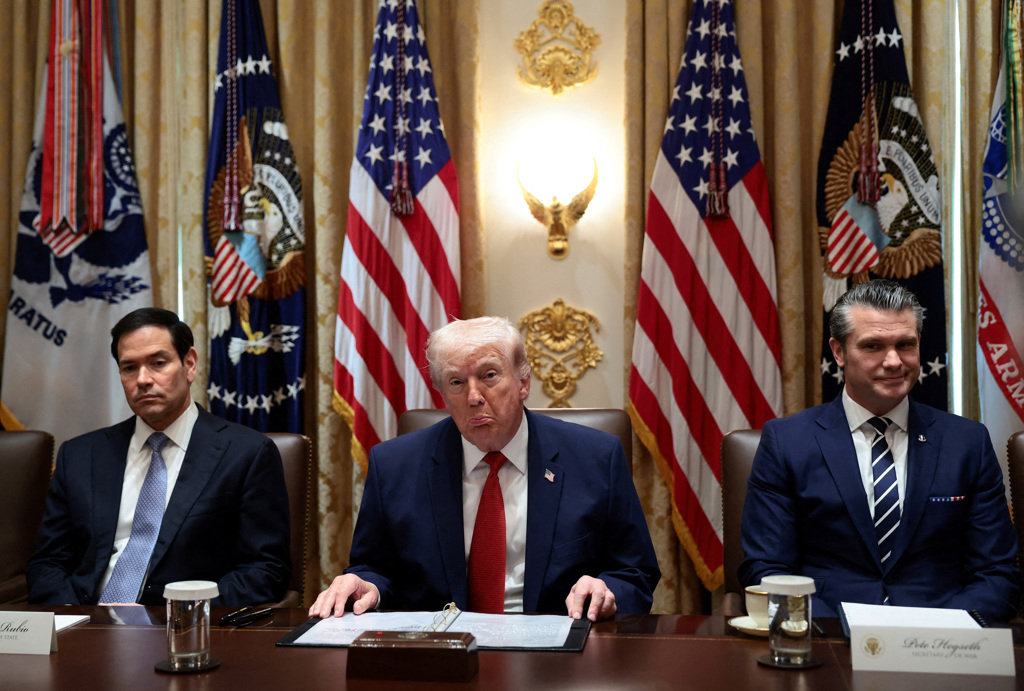 ▲美国总统特朗普在18日上午召集白宫战情室会议,讨论有关霍尔木兹海峡新一轮危机以及与伊朗的谈判情况。图为特朗普上月召开内阁会议画面。(资料照/路透)