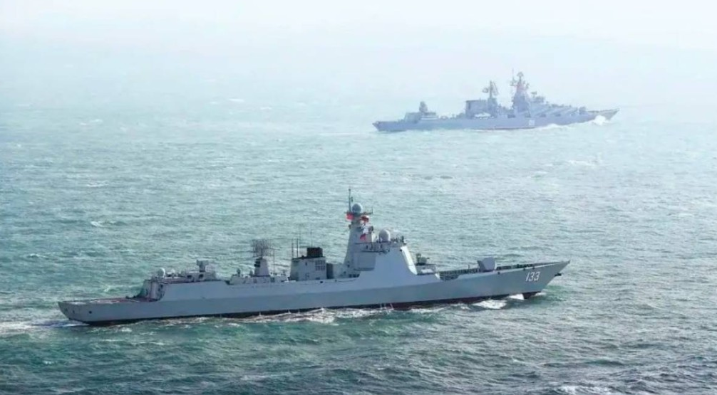 ▲“包头号”导弹驱逐舰(舷号133)编队,过航横当水道。示意图