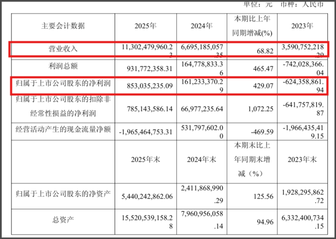 2025年,在AI技术普及与存储行业周期上行驱动下,佰维存储业绩猛增:营收达113.02亿元,同比增长69%,归母净利润达8.53亿元,同比大增429%;扣非净利润更是同比翻十倍达7.85 亿元。