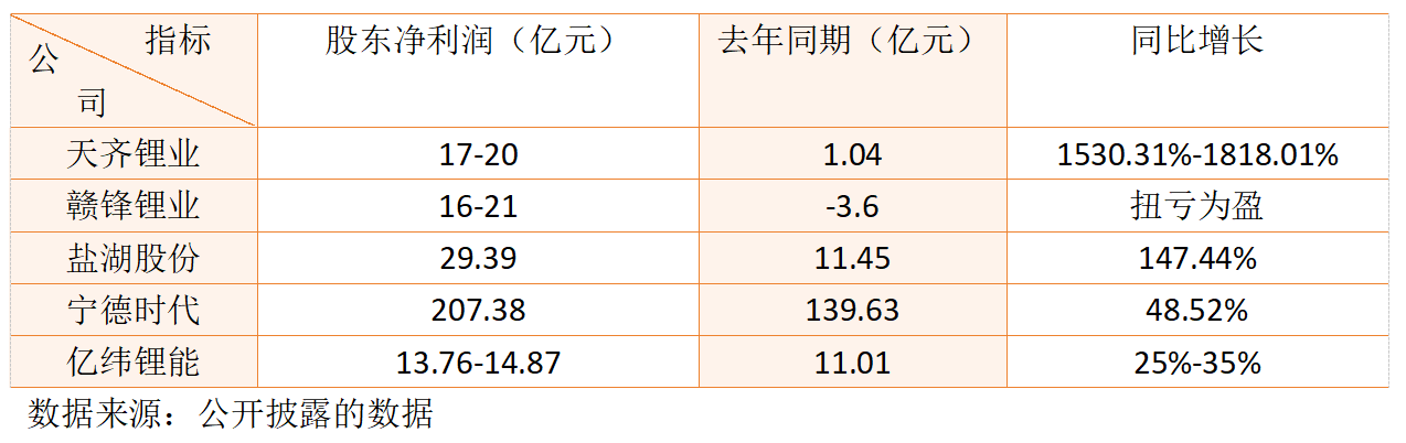 2026年第一季度,产业链业绩进一步井喷,由于碳酸锂价格继续暴涨,加上需求端的持续释放,赣锋锂业实现扭亏为盈,天齐锂业增长超15倍,其他中小型标的也获得一杯羹,比如盐湖股份股东净利润大增1.47倍。在产业链下游,期间宁德时代股东净利润207.38亿元,同比增长48.52%,亿纬锂能预告净利润13.76-14.87亿元,同比增长为25%-35%。