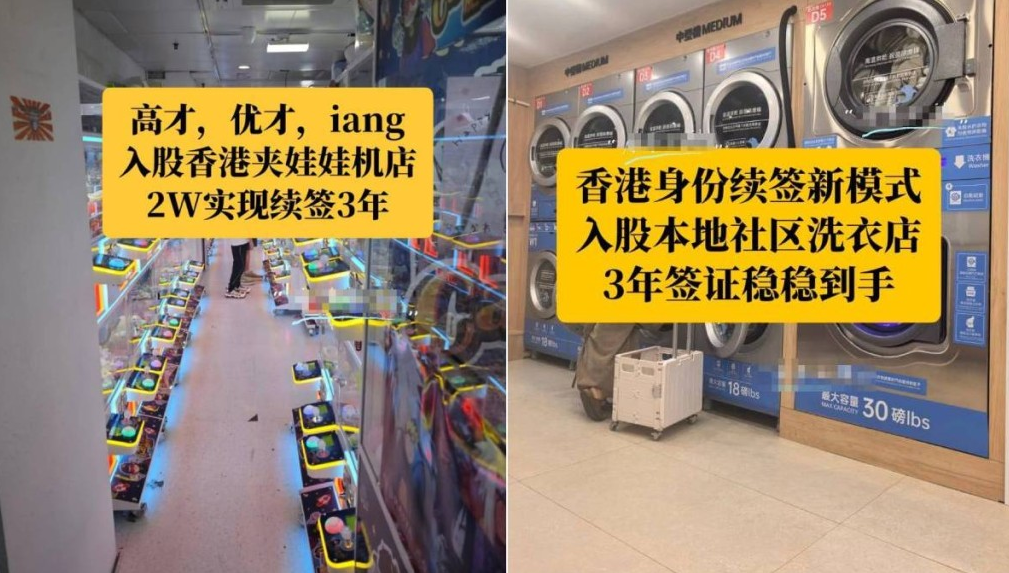 不过在小红书等社交平台,有移民中介宣传称,其公司在港运营着多类轻资产实体店,除弹珠机店、夹公仔机店外,亦涵盖茶饮店、自助洗衣店、自助洗车店、快递驿站、教育机构、电商取货点等。有续签需求的港漂或专才客户可自由挑选项目,缴费“入股”,以合伙人名义申报自雇续签,且门店实际盈亏与客户无关。